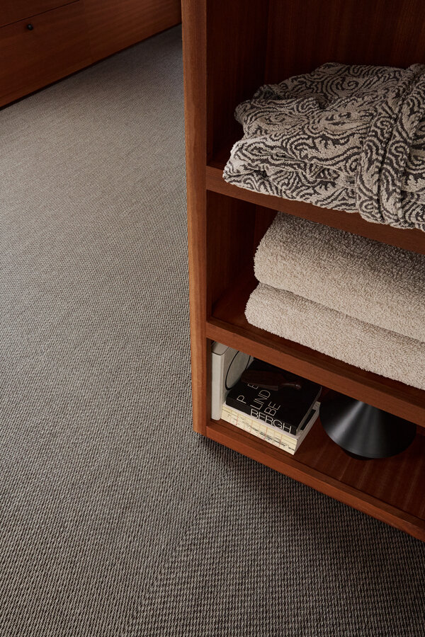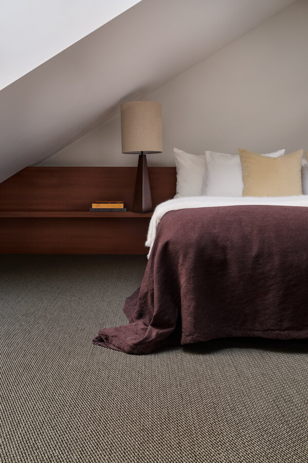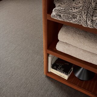 Ein von Sisalmatten inspirierter Bodenbelag mit weicher, strukturierter und zugleich strapazierfähiger Haptik in Graubeige / Dunkelbraun. Das klassische, elegante Muster und die textile Oberfläche machen diesen Boden zu einer hochwertigen Lösung für Büros, Hotels und viele weitere Einsatzbereiche. Die Kollektion ist mit gefaltetem Garn gewebt und entspricht der Nutzungsklasse 32.