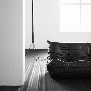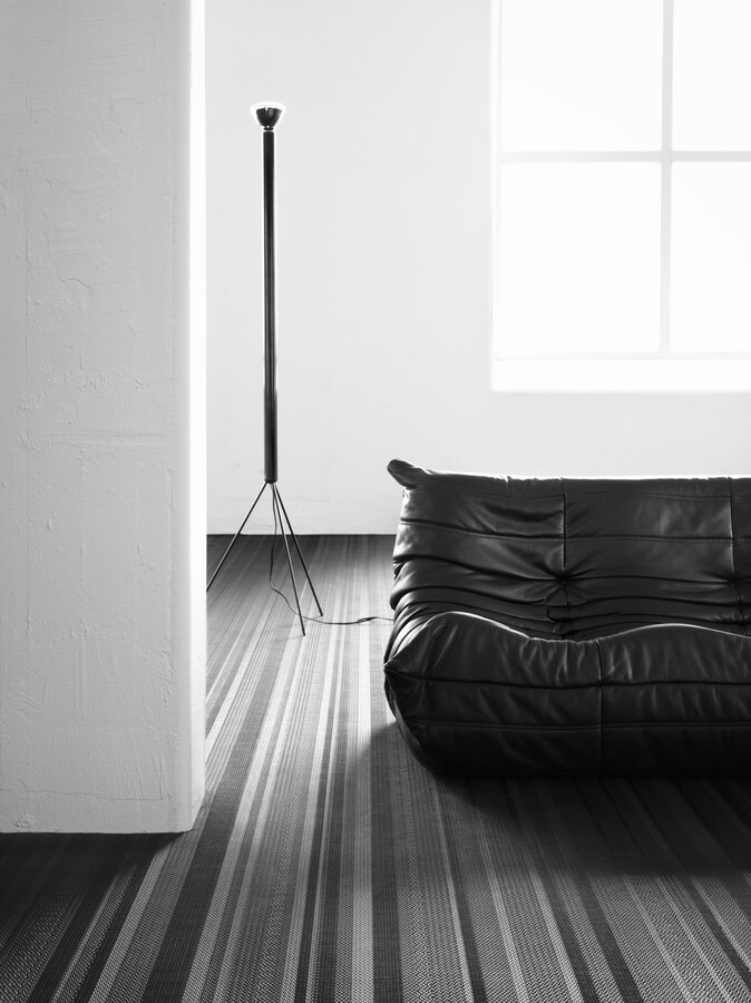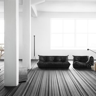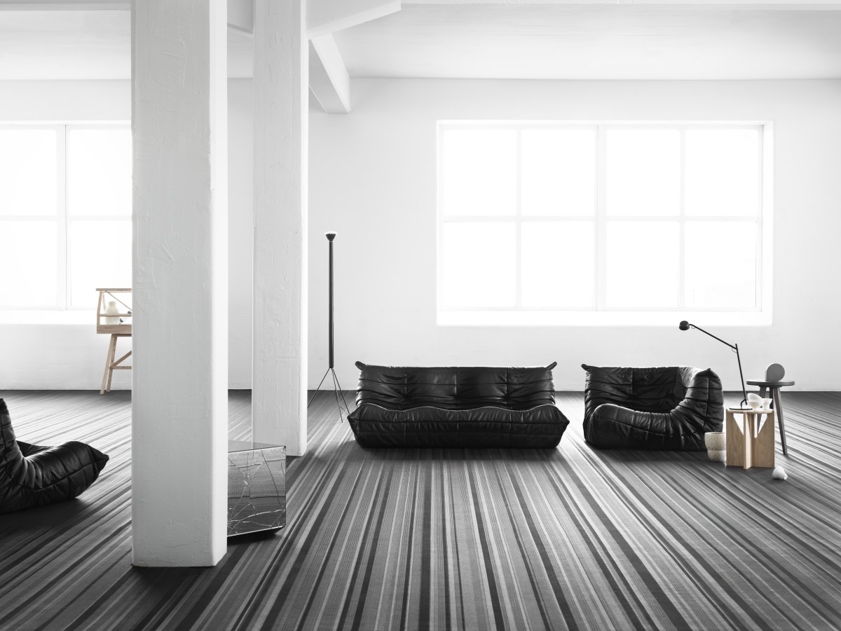 Handmade, industrial flooring with architectural sensibilities and a linear design that amplifies spatial geometry – No 3 features a light grey / dark grey colour palette.
