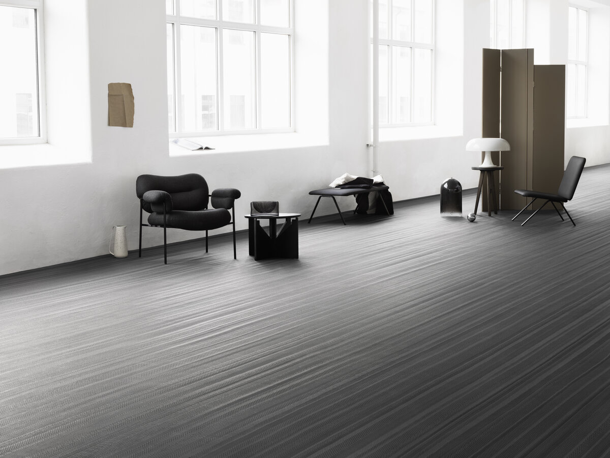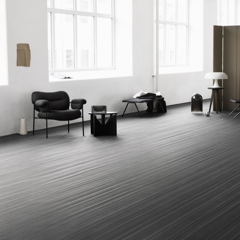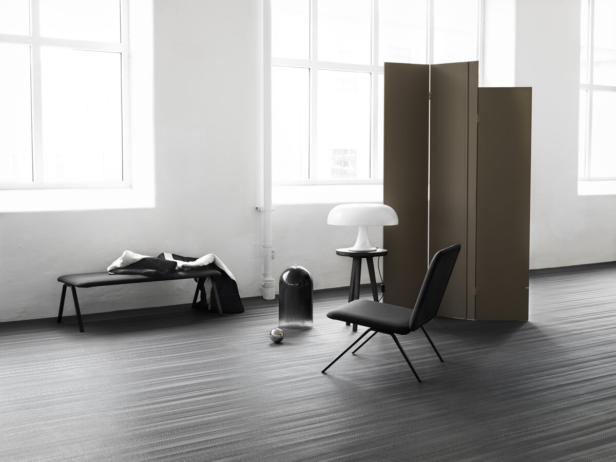 Handmade, industrial flooring with architectural sensibilities and a linear design that amplifies spatial geometry – No 6’s colour palette features light grey in two shades.