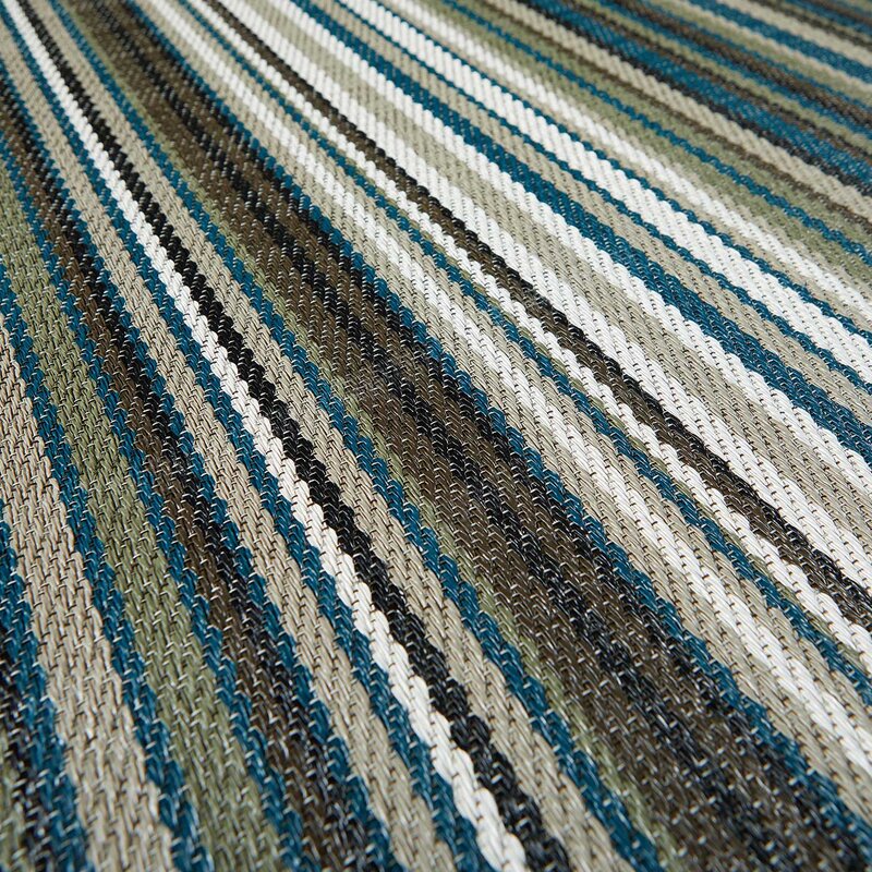 Flooring that reflects the diversity of nature and traditional handicraft, expressed in a striped pattern featuring brown, green and blue. The floor has a tangible textile feeling. It has a modern look but flirts exquisitely with idioms from the past.