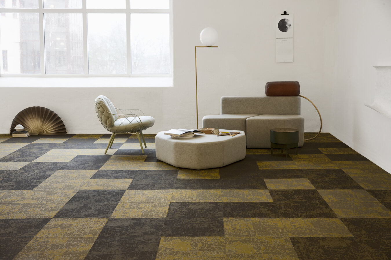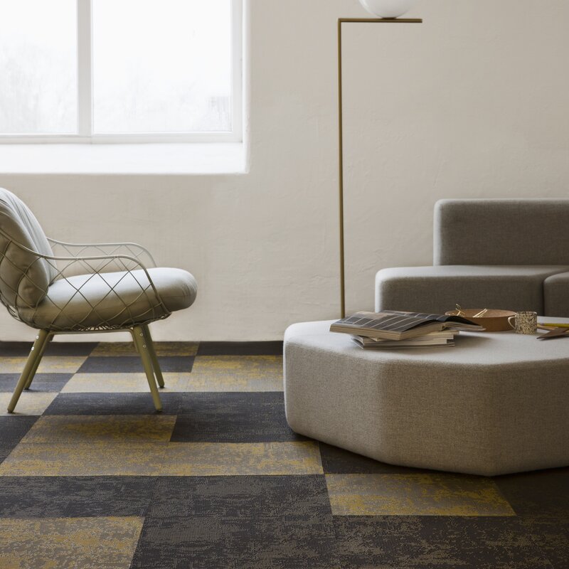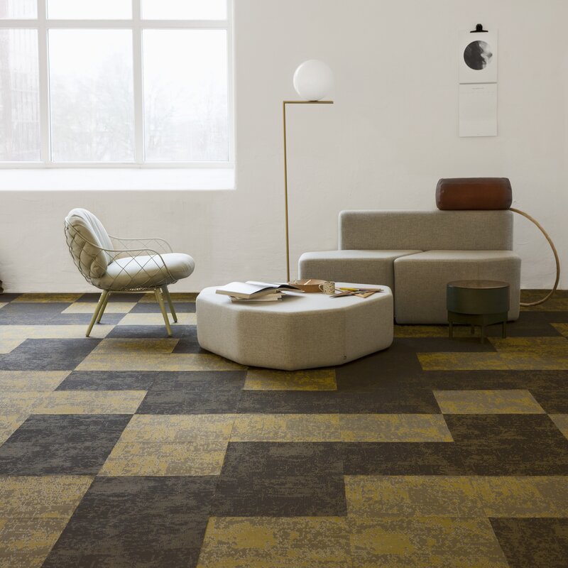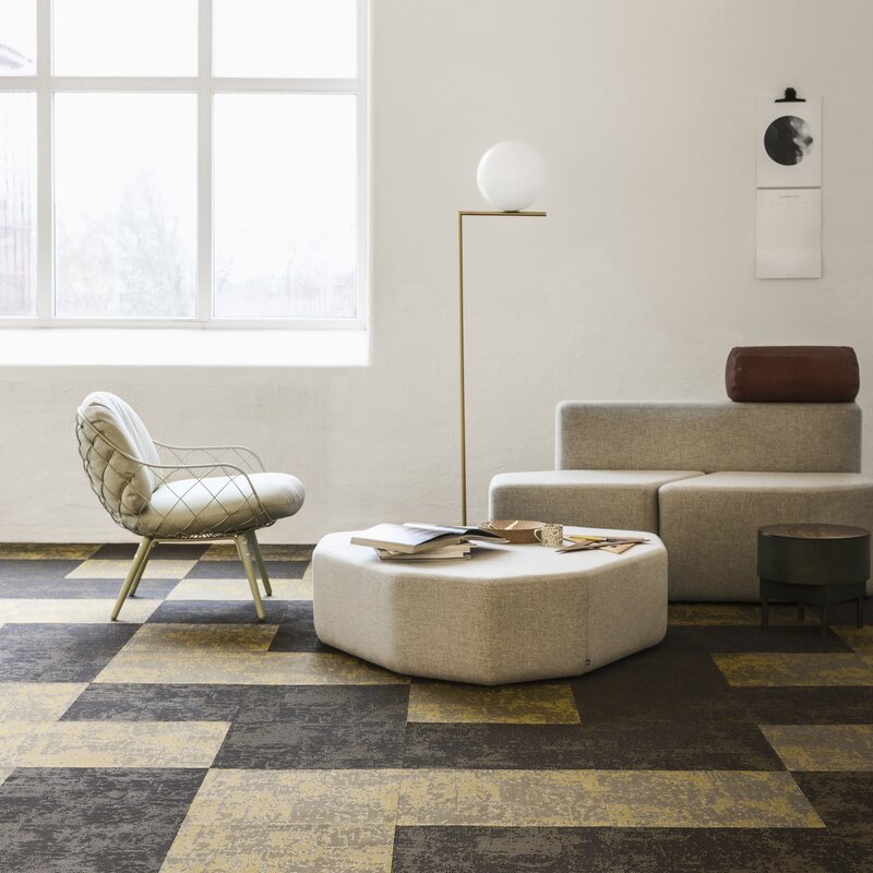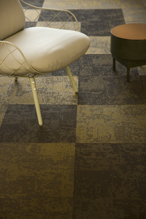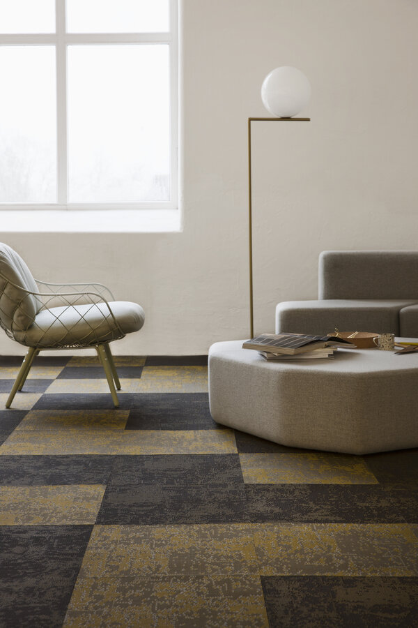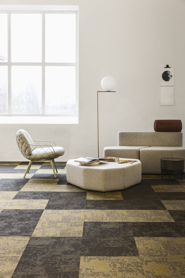 Profiled yarn flooring with a textured surface creates exciting 3D effects – Facio presents this in khaki green. The profiled yarn lets the floor create three-dimensional and light reflecting effects that bring any interior environment to life. The colours shift spectacularly between shades of light and dark, depending on where in the room you are standing, how the light falls and how the flooring is laid.