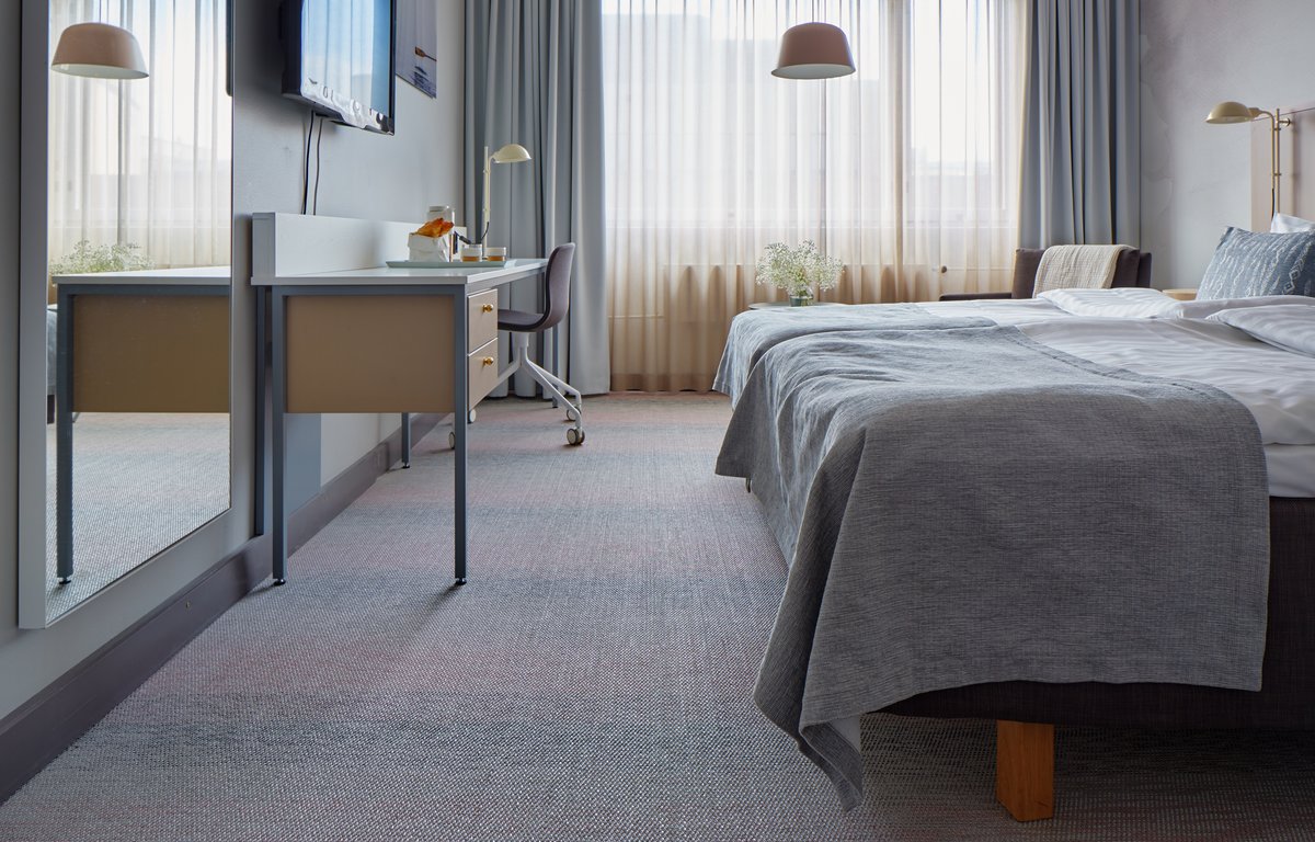 This urban hotel in Helsinki Finland received a fresh update through the expertise of Design Office KOKO3. Known for their ability to create unique concepts and places for people and brands, the agency chose flooring from Bolon to complete the renovation of the Presidentti’s rooms. Covering two floors, 3,000 square meters of Graphic Checked and Flow Coral were installed to match the metropolitan feel and surroundings of the building. Designed with the user in mind, the flooring offers an elegant look and a soft touch – perfect for a hotel environment.