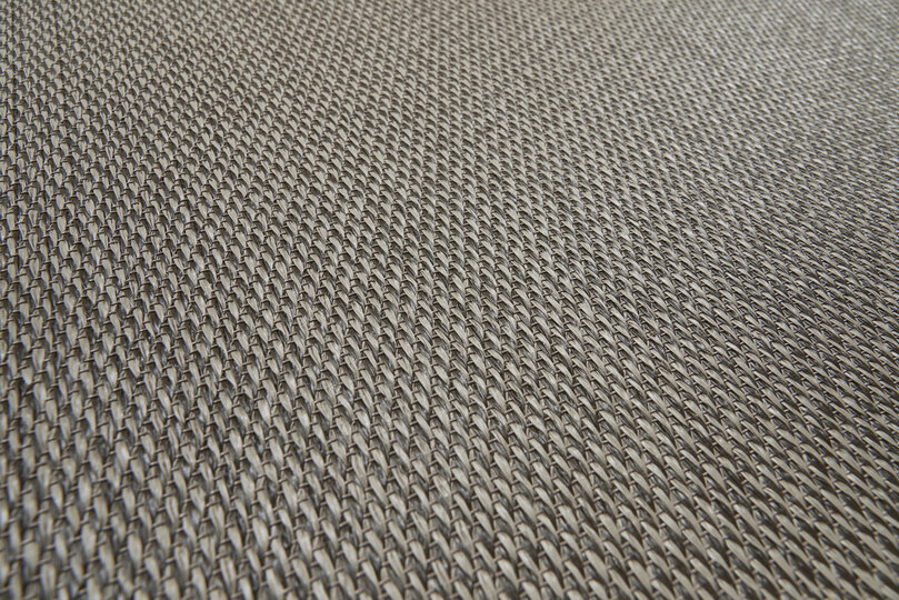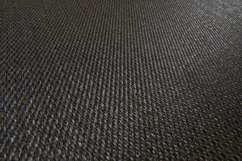 Estas alfombras están inspirados en los tapetes de sisal y tienen una sensación suave, estructurada y duradera presentada en un tono gris/negro metálico. El tapete tiene un patrón clásico y elegante y una sensación y estructura suave y textil, lo que lo convierte en una solución de tapete excepcional para oficinas, hoteles y muchos otros entornos. La colección está tejida con hilos doblados con una calificación de desgaste de 32.