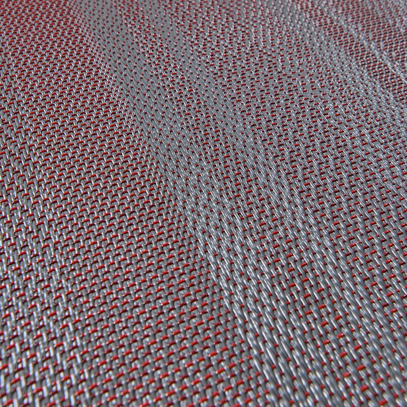 Industrigulv med håndvevd effekt, skapt med arkitektonisk sensibilitet og en lineær design som forsterker romlig geometri – nr. 05 har en rød og lysegrå fargepalett. Bolon by Jean Nouvel Design er et arkitektdrevet gulvkonsept i seks ulike farger. Kolleksjonen forsterker geometrien i et rom og gjør det mulig å eksperimentere med utformingen og den naturlige flyten i rommet.