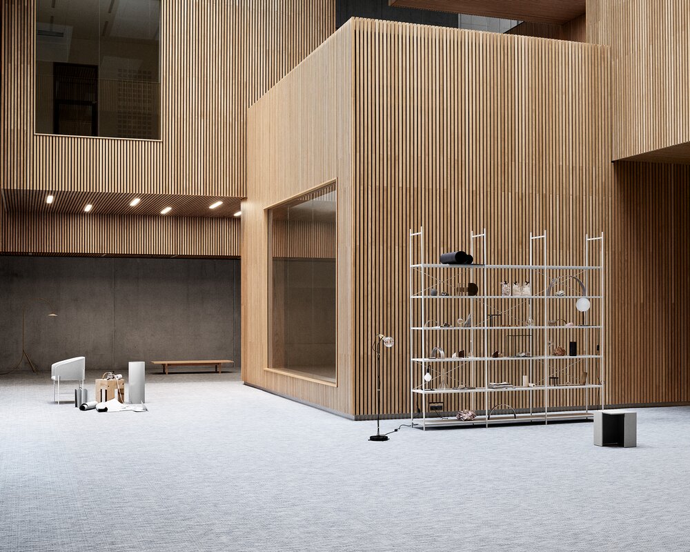 För installationer på bottenvåningen rekommenderar vi att du använder vårt standardgolv. För att ytterligare förbättra akustiken i samma rum rekommenderas ljudabsorberande element på väggar och tak.