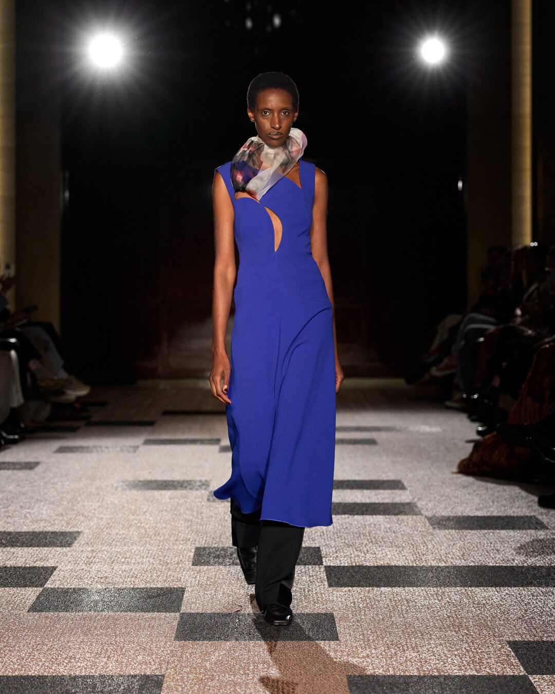Since 2005, Roksanda has built a woman-centred fashion brand, defined by daring use of colour, sculptural silhouettes, and an unwavering commitment to empowering femininity. For this show, the catwalk itself became part of the narrative, with Bolon’s woven flooring creating an architectural foundation for her vision. We spoke with the designer about her inspirations, the role of space and materiality in fashion, and how she envisioned the future of fashion and design.